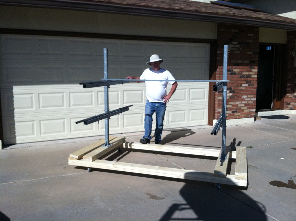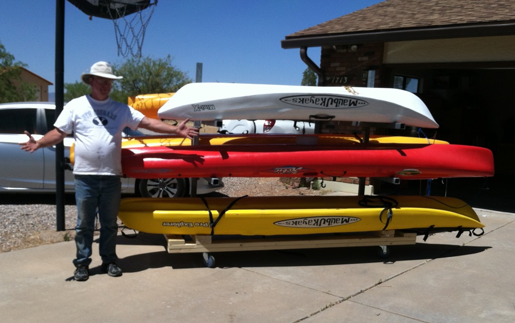 A cart/mounts to store kayaks on and easily move them around when needed.